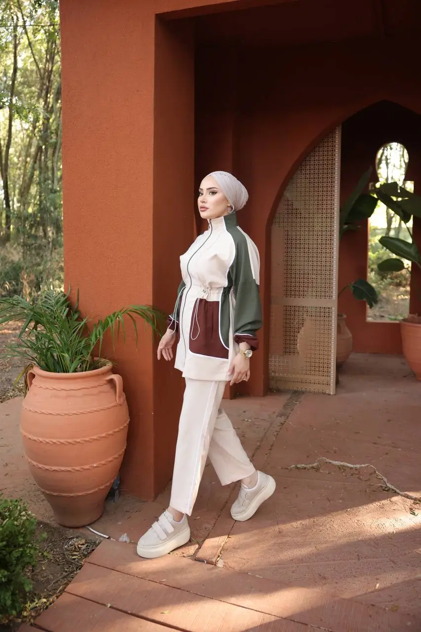 طقم تدريب يومي محتشم من قطن دوبل كريب – مع سحاب كامل وجيوب جانبية