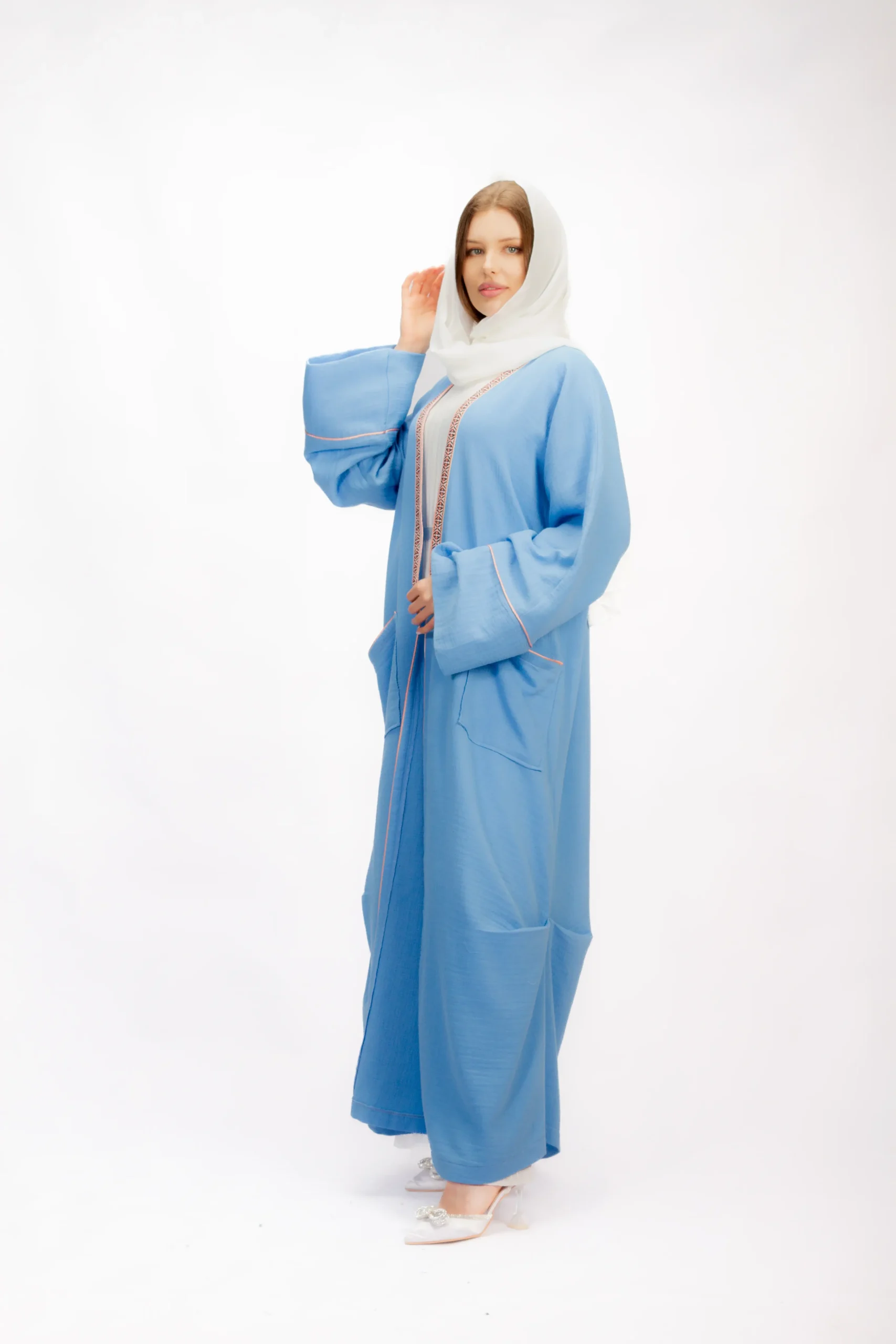 Elegant Sky Blue Abaya with White Scarf Elegant Sky Blue