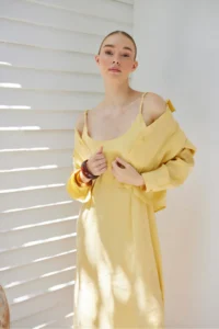 Stay effortlessly chic with this women’s linen two-piece set, designed for relaxed comfort and modern elegance. The set includes a button-up shirt and wide-leg pants made from soft, breathable linen fabric — perfect for warm weather or all-day wear.