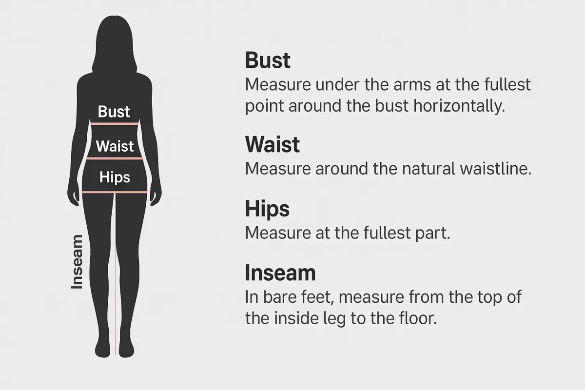 Since clothing sizes can vary across different regions, the chart below provides international conversions. It helps you match your body size to the corresponding sizes in Europe, US, UK, Australia, Italy, and Russia, ensuring you choose the right fit with confidence.