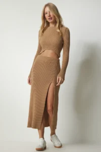Triko Knit Skirt Set for Women – Ribbed Two-Piece with Crop Top